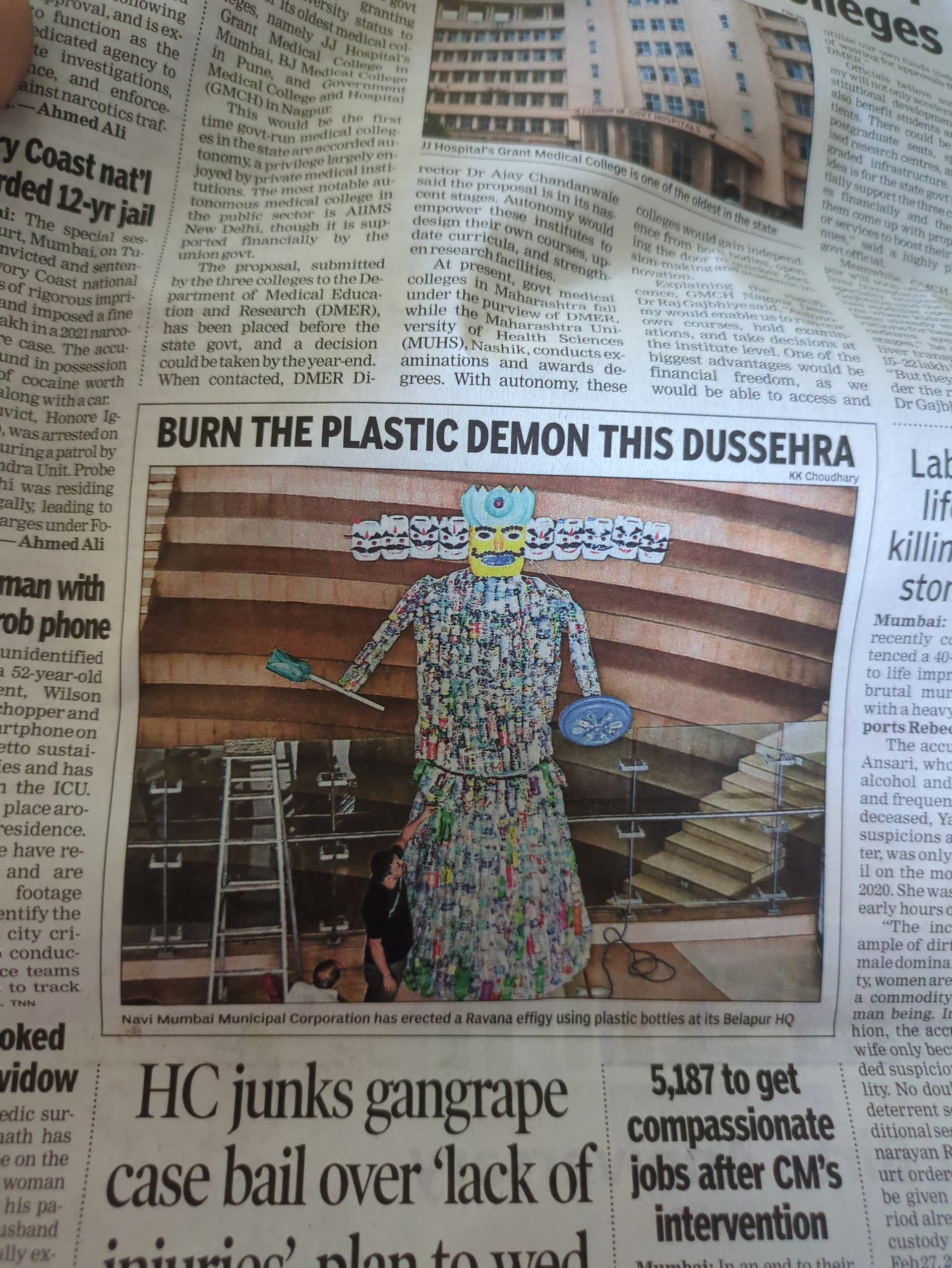 In today’s (02/10/25) Times of India newspaper pg 6, I saw a picture stating that Navi Mumbai Municipal Corporation has erected a Ravana effigy using plastic bottles at its Belapur HQ. Is this true? As I understand, burning plastic, specially PET bottles have worse health and environmental impact compared to traditional wood/paper/cardboard/cloth effigy.