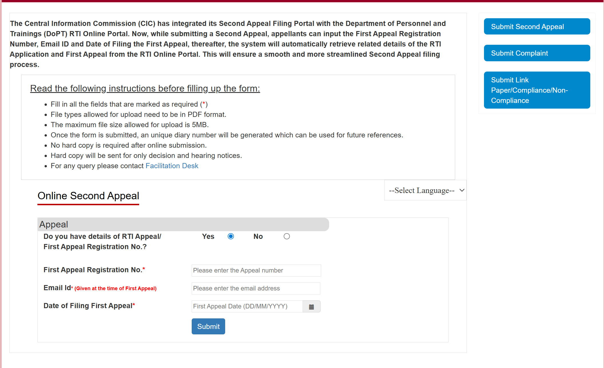 - In cases of no response, misleading/incomplete information, or refusal, a complaint under Section 18 can also be filed directly with the Commission in addition to or instead of a Second Appeal, as per FAQs and Commission procedures.