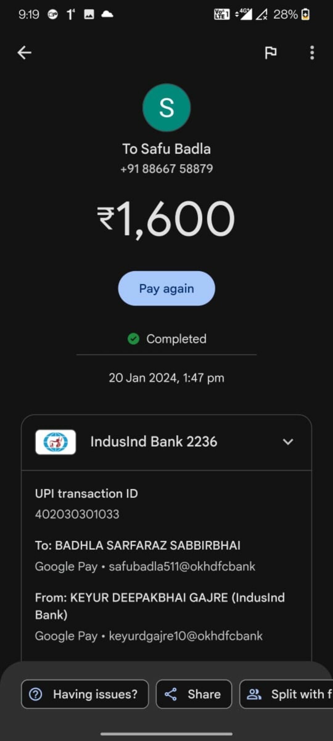 Respected Sir, My Indusind Bank Account 100101402236 is has lien 1600 rs on hold by Kerala Thiruvananthapuram Cyber Police And Kerala Thiruvananthapuram Cyber Police is Harassing Me By Holding Hard Worked Money 1600 rs and torturing Innocent Peoples and By Saying You Go To Court I am Poor Man I can’t afford Court Hearings and Lawyer Fees, also all Evidence are shared with Kerala Cyber Police I dont have any Kind of Customers Money Physically Or Digitally this is My Money I Have Worked Hard and Earned this Money As Employee. 1600 rs CX Money is With Sarfaraz Badla (Mo. 8866758879) Attaching Bank Transfer Statement Complaint To CMO Kerala For Kerala TVM Police Harassment .Also Kerala Cybercrime Police Inspector Mr Somasekaran Nair Sir Know That I dont have customers Money in My Account and After Knowing Also not Removing 1600 rs lien amount ,also I Want My Hard Earned Money Back. So I Request You To Remove Lien On Amount 1600 rs Sir . Thank you