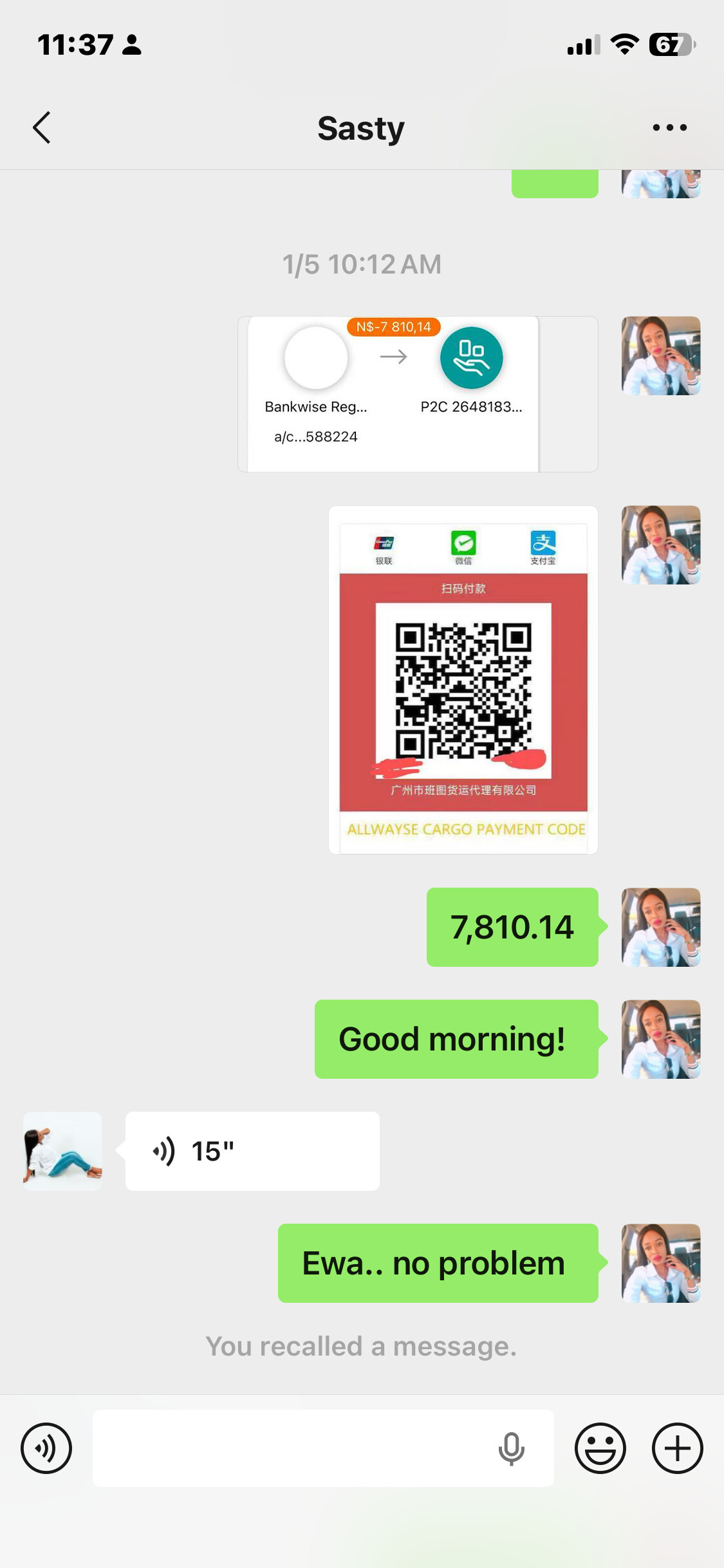 - Action: Open your Alipay or WeChat Pay app, go to your transaction history, and find the exact payment of 7,810.14 (or the equivalent RMB amount) made to Allwayse Cargo.