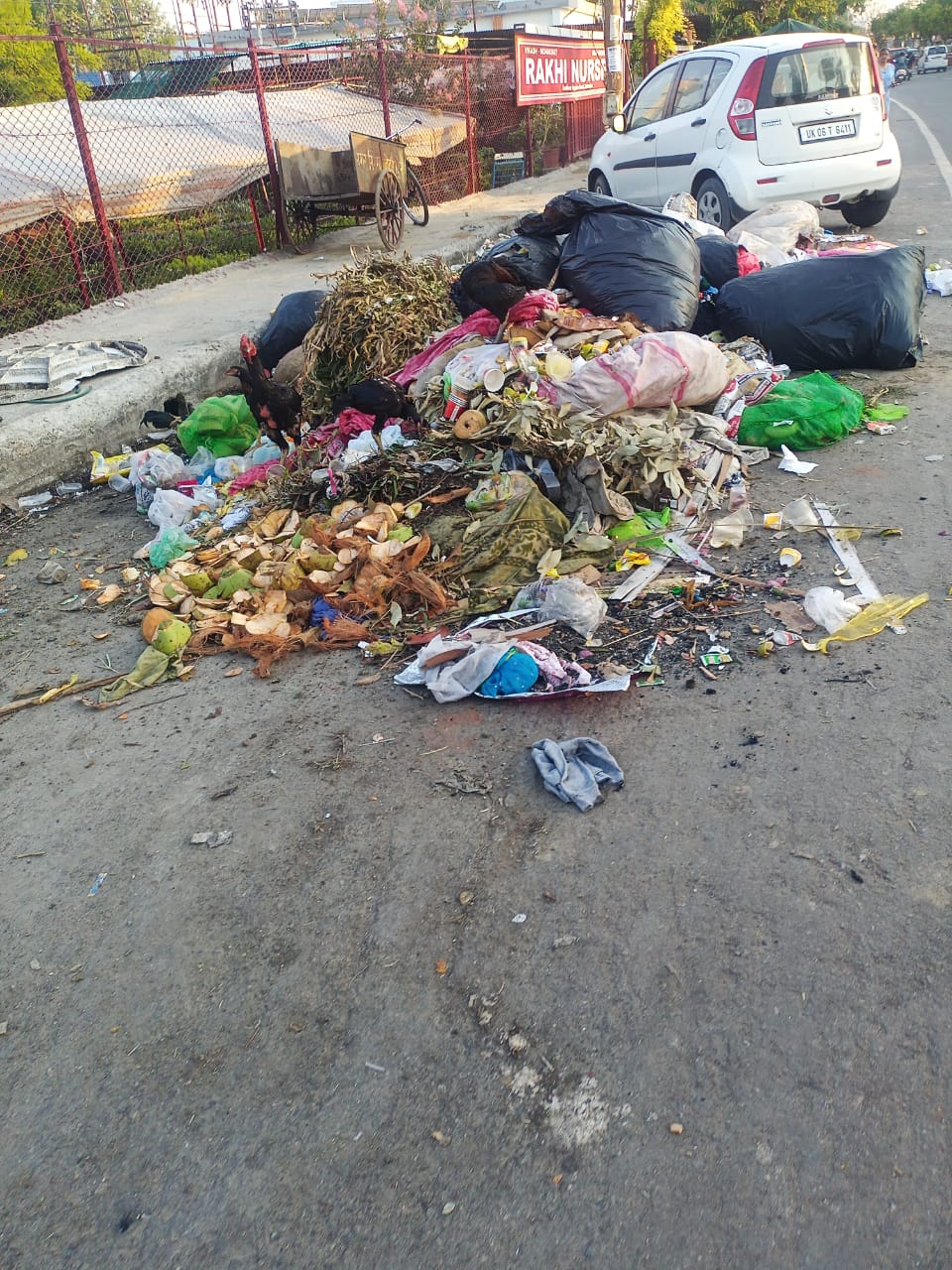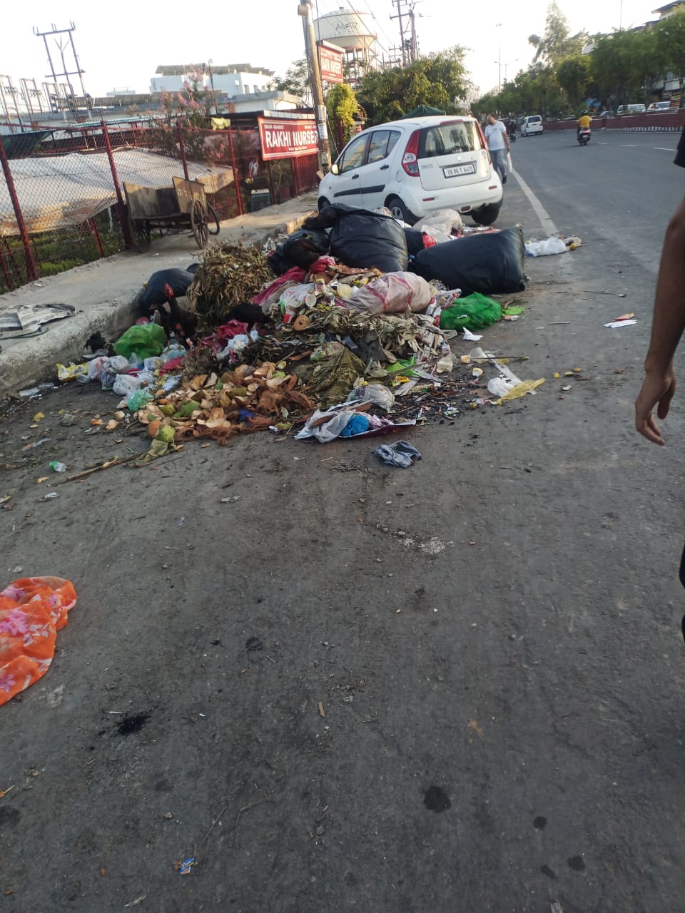 There is a large amount of garbage on the road, and it creates a very bad smell. This is causing serious inconvenience and health concerns.